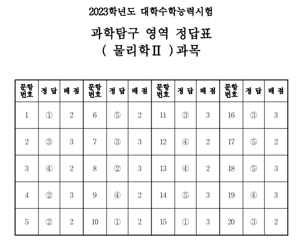 2023수능 물리학2 정답